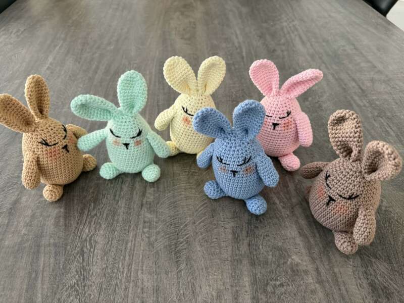 So we’re doing this little campaign. The bunnies are 7 inches / 18 cm tall. 100% cotton. Each is $16 or AMD 6000.