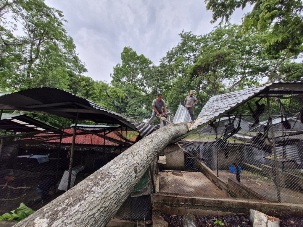 Heavy rainfall is not uncommon in the jungles of Guatemala, but sometimes the effects of global climate change make these events stronger and happen in smaller stretches of time. This can and will damage infrastructure, the single jobo tree (Spondias mombin) damaged 8 enclosures, the roof the veterinary clinic and nearly missed the incinerator.