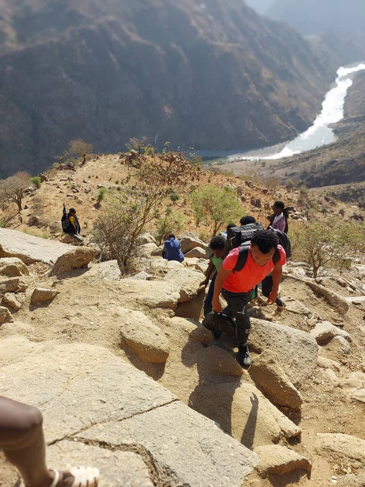 The area was only accessible by driving by car till the road ends, walking through rocky terrain to reach the river, crossing the river with water coming to your neck on the first trip and the second trip to your eyebrows, after that a trek through steep mountains, passing cliffs where you don't want to look down and finally reaching the area where people live at the verge of death. Our team risked their lives two times, the area is also surrounded by enemy forces, we took a huge amount of cash, notebooks, pens, baby formula, seeds...all across the river, carried on heads and on a small raft which we made for the second trip.