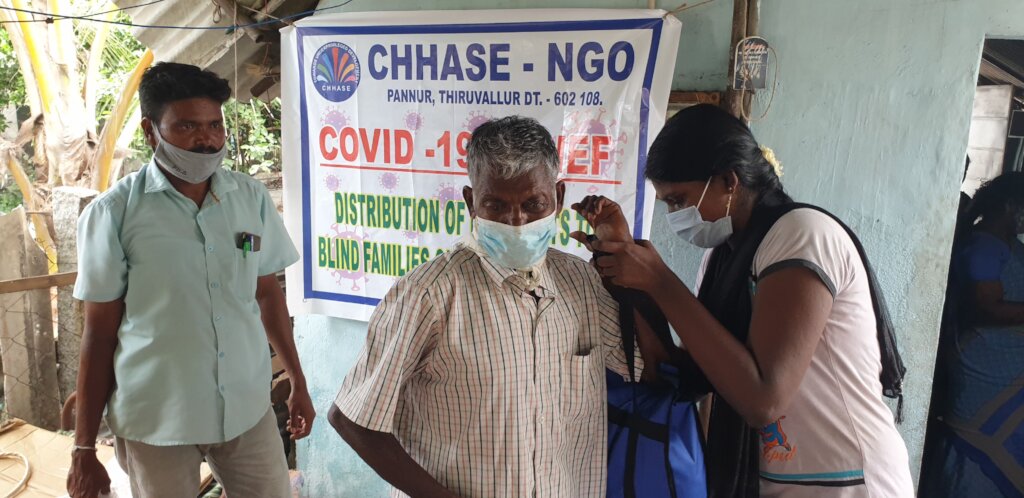 I am jasmine ( name changed), wife of Mr. Anthony ( name changed . My husband is blind and I am house wife. We have 2 kids. I am from a very poor family. My husband is a begger in railway stations, streets. We were getting very meager amount to run our family. When lockdowns imposed, we lost even that amount and were almost starving for days together. We came to know the telephone number of CHHASE NGO, through one of our well-wisher.