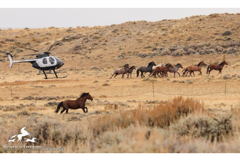 In September, RTF's Humane Witness endured another heartbreaking scene as a stallion tried for hours to rescue his family during the helicopter roundup at the Great Divide Basin Herd Management Area in Wyoming. Another cruel & costly government roundup destroying our wild horses' families, freedom and home on the range...forever. We are working every day on the national level to replace traumatic family-shattering roundups with humane, on-the-range management like we use at RTF. Join the fight.