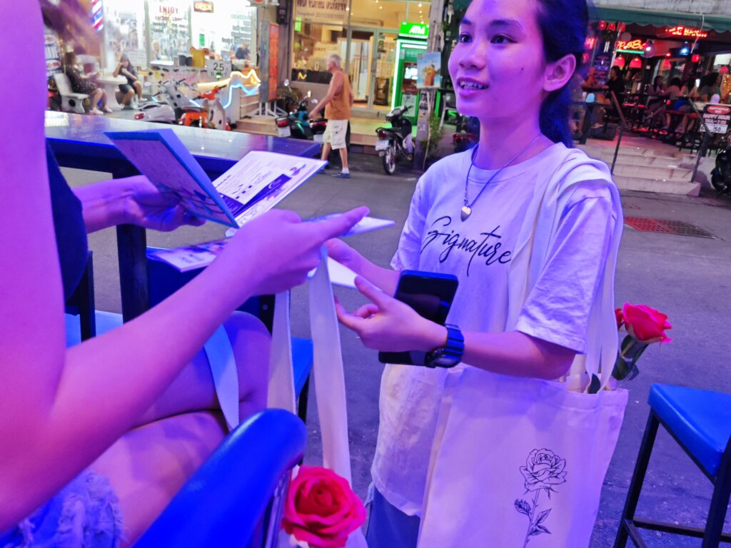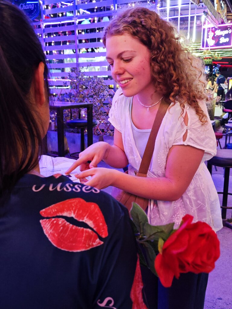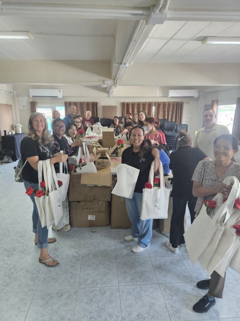 Greetings from Tamar Center. Thank you very much for supporting our Valentine Outreach this year. It has been a very special day for us. On Tuesday the 11th of February we distributed 1500 Valentine Gift Bags in the bars of Pattaya. We had around 80 people come and help us. Many of them, came for Pattaya Praise - a big event in the City - and helped us. We packed the bags in the afternoon and in the early evening we went out into six different areas of Pattaya and distributed the bags. The women were happy to receive the bags. On women told us with tears in her eyes that she had never gotten a Valentine Gift before. Others were just happy about the gift and the books and three women directly called the hotline to ask for more information about our vocational training options! It was a huge success and only the future will show the impact that your gifts had on the girls. Each bag contained a rose, body lotion, a beauty face mask, a handmade cookie from our team, a book with a story from a survivor from the Bars in Pattaya, a leaflet, information about vocational training options and a message for Valentine to tell the women that they are loved! We trust that we will see much fruit from this outreach and are thankful that you partnered with us!!!