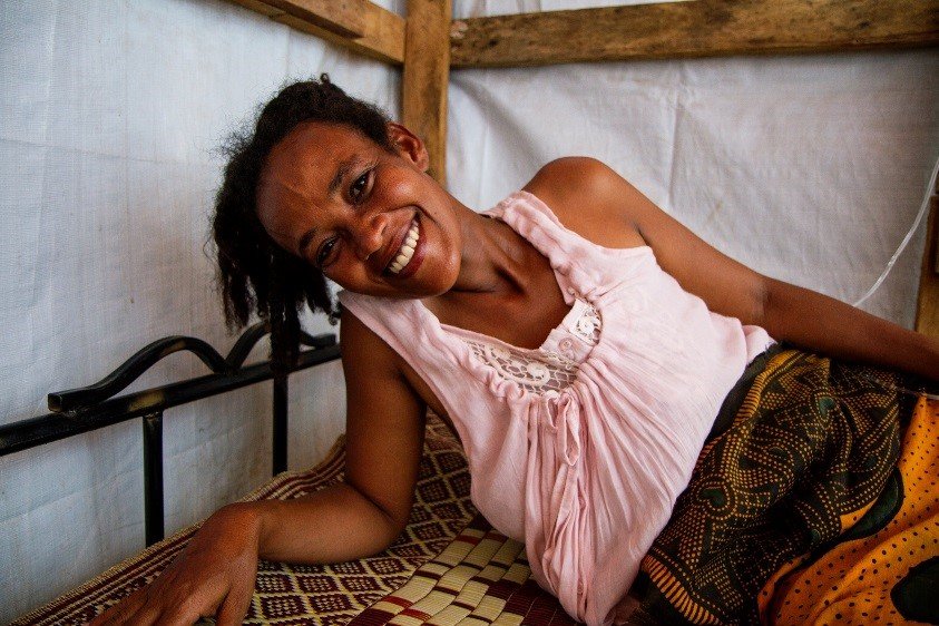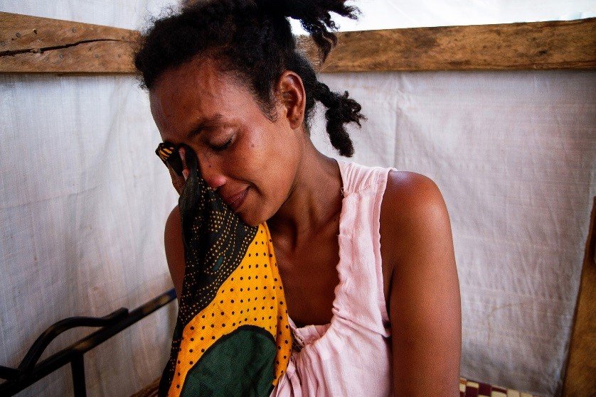 On a clinic bed in a site for those displaced by violence in South Sudan, rests Madi, a woman who simultaneously cries and smiles as she talks about her struggles. She has come to the clinic with stomach pains and vomiting. But she shows heartache more than anything.