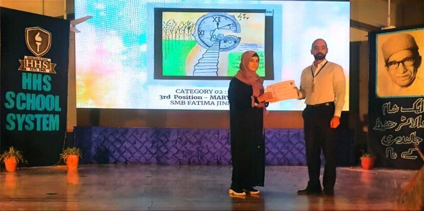 Art wasn’t confined to school. SMB and KPS students excelled in the HHS School System’s Annual Literary Art Project, where Ayesha (Grade 10) won first place and Marium (Grade 8) took third. Field trips brought fresh inspiration: a visit to the Karachi Biennale introduced students to art tackling global challenges like climate change and food insecurity, while an origami workshop celebrated the art of folding and creativity.