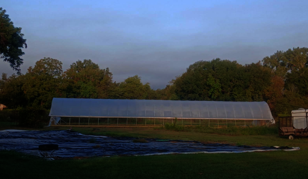 The addition of the hoop house allows us to extend our growing season and exert more control over environmental conditions—especially important given the changing climate patterns and unpredictable weather in East Texas. This structure protects young crops from frost, heavy rain, and wind, while also regulating soil warmth and moisture levels.