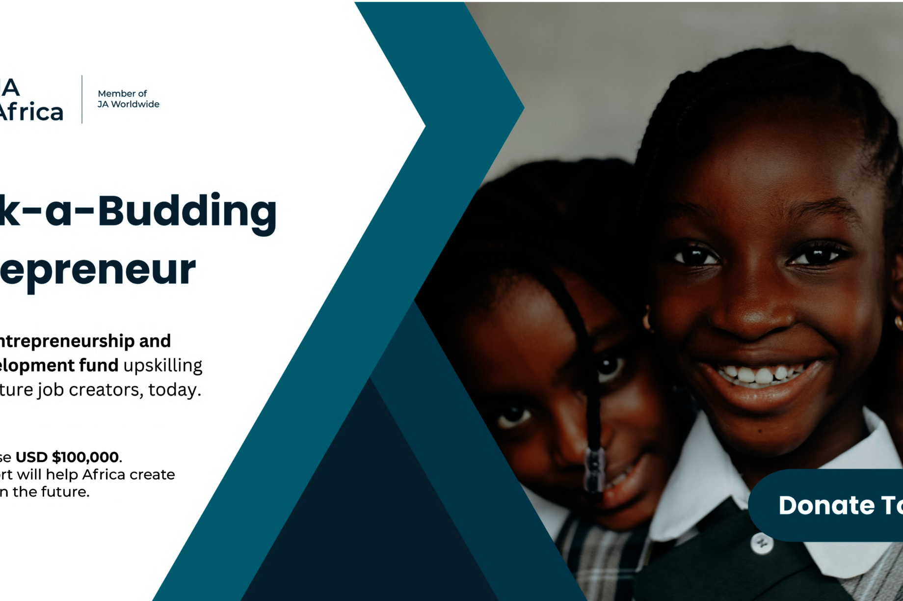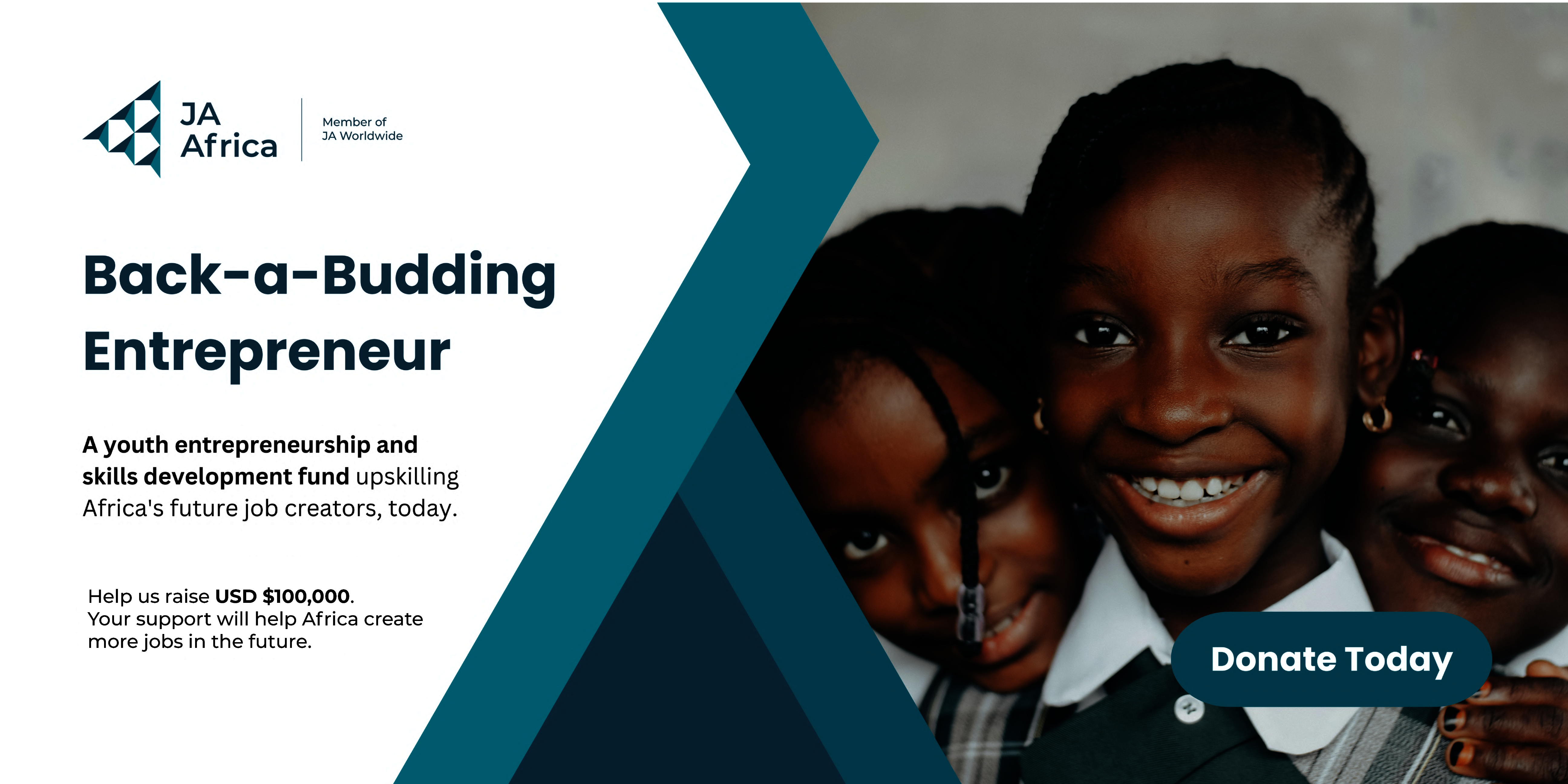 The "Back-a-Budding" Campaign supports the provision of entrepreneurship training, seed funding, and micro-grants for young entrepreneurs in JA programs across Africa. By offering our students a diverse array of programs, opportunities, and resources, we are developing a generation of well-rounded and inspired leaders equipped with the skillsets and mindset to build thriving communities. Help us raise $100,000 to fund 100 entrepreneurs to foster job creation and innovation.