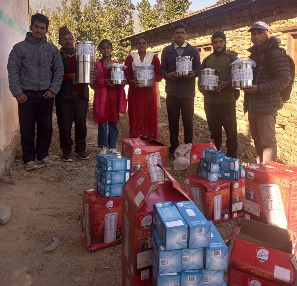 With the objective of ensuring access to safe drinking water for students, total 30 stainless-steel water filters were distributed to five schools in Bheri Municipality, Jajarkot district in western Nepal. Among them, 14 filters have capacity of 13 liters and 16 filters have capacity of 18 liters, enabling schools to meet the daily drinking water needs of students. Each water filter is fitted with a candle, which has 3-layer system (Silver impregnated; Granular Activated Carbon; and outer ceramic (diatomaceous earth)) and hence can remove bacteria, turbidity and protozoa. It complies with WHO standards.