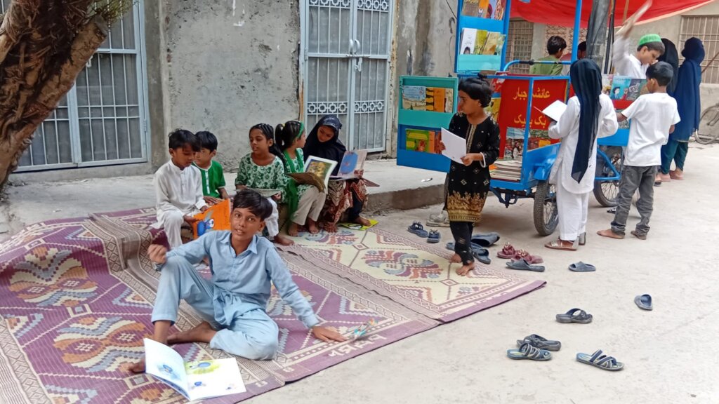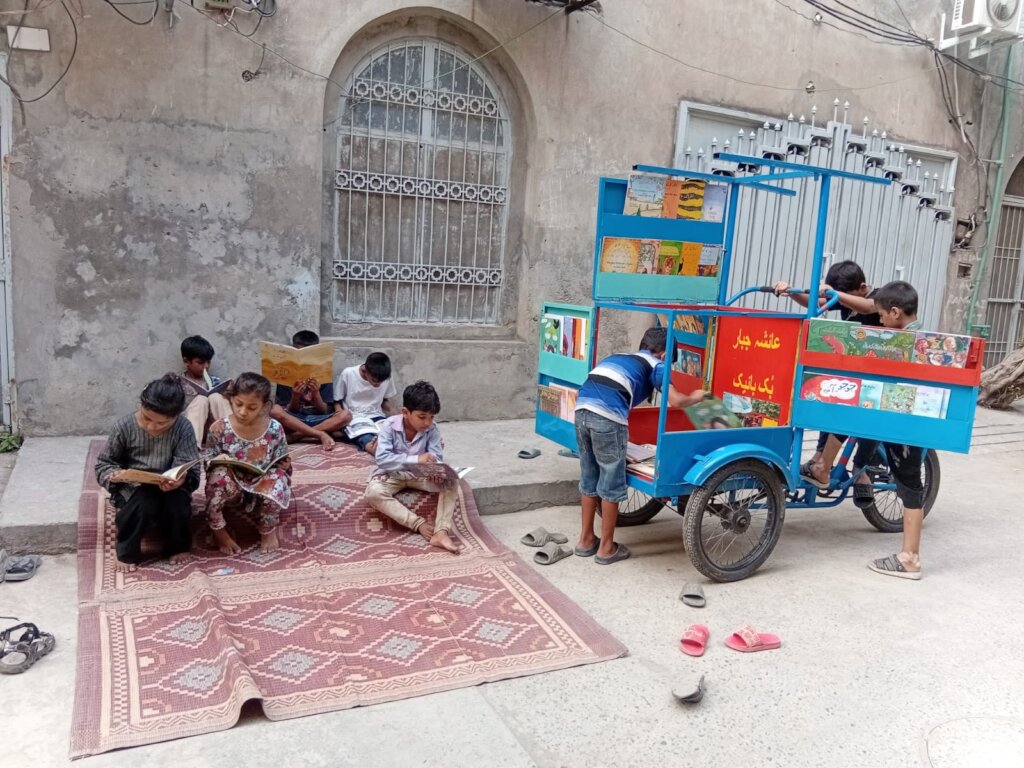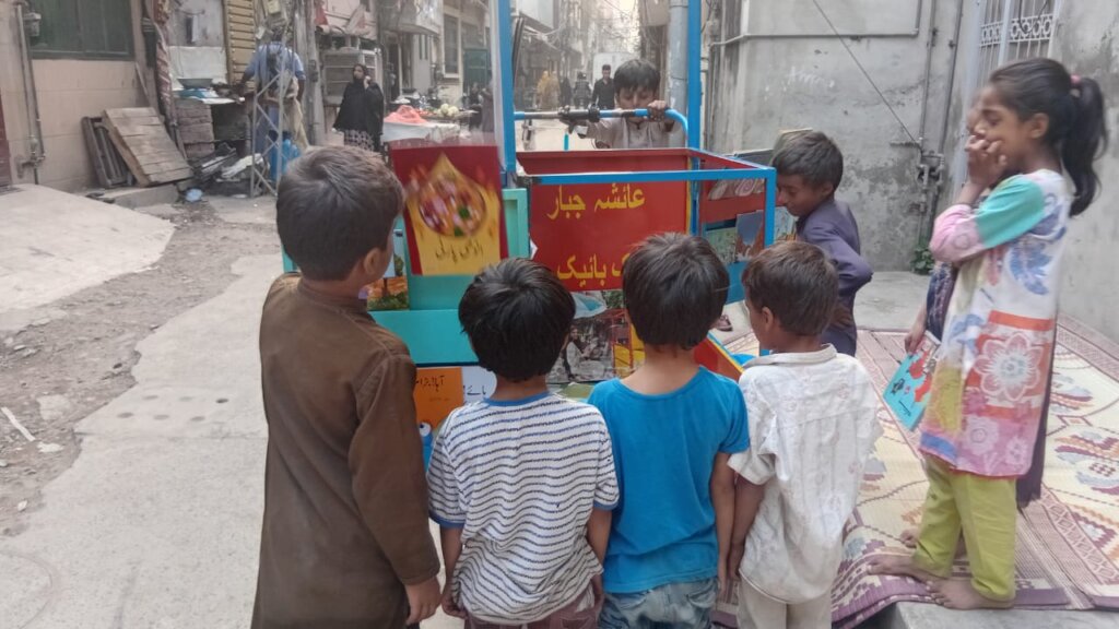 This quarter, Wheels of Wonder, Alif Laila’s Book Bike (Cycle Library), continued to transform the learning landscape for children in underserved communities. Designed for young readers who have limited access to books or educational spaces, the Cycle Library brings stories, joy, and imagination directly into their neighborhoods. With every visit, it creates a safe, welcoming space where children can explore books, express their thoughts, and develop confidence in their reading abilities.