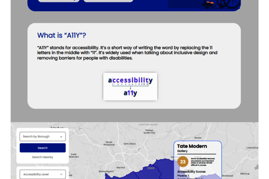 The Accessibility Map assesses institutions based on five disability categories-physical, visual, hearing, cognitive, and mobility-and visualizes their accessibility scores. We engage municipalities, NGOs, and disability experts to improve access and monitor progress.