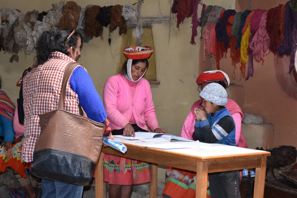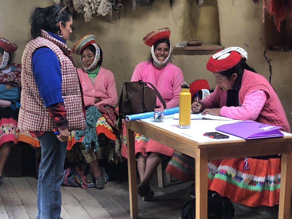 At our most recent tourism workshop, the artisans gathered at their weaving center in Patacancha last week to meet with with Mercedes Durand, Awamaki's Head of Women's Artisan Cooperatives. The Songuillay Cooperative has been working hard to expand their business, regularly hosting tours at the weaving center, managing the tourism agency clientele they have built, and preparing to host an upcoming multi-day cultural exchange program and homestay for 25 students visiting from the U.S.