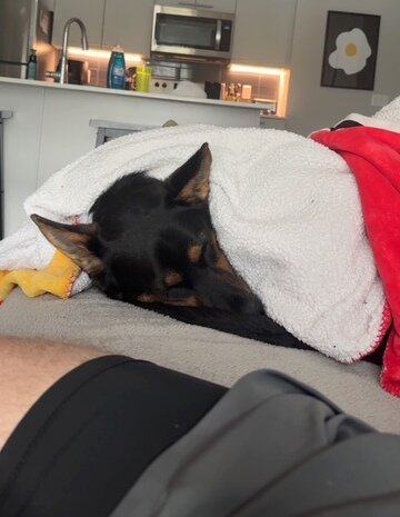 ![Ronald loves his tiny Yorkie mix, Teenie!]()