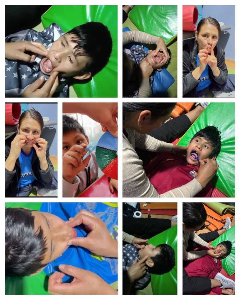 Para reducir su agresividad , el servicio de psicología implementó un enfoque gradual, lo que permitió a Gino familiarizarse con el espacio terapéutico y no percibirlo como una amenaza. Se utilizaron canciones y objetos de su preferencia para facilitar la conexión y generar confianza. Para estimular el lenguaje, que era casi inexistente , se incorporaron herramientas orofaciales, como pequeñas paletas y cuentas, junto con movimientos faciales suaves, ejercicios de apertura y cierre de la boca, actividades de movilidad lingual y estimulación sensorial para activar respuestas que su cuerpo aún no podía iniciar de forma independiente.