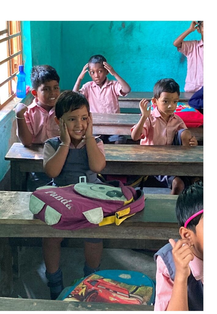 My heart was singing as we walked the few steps from Alindra’s house to the school on the Monday and were greeted with smiles of recognition from the older students who remembered us from our last visit in November 2019 and some reserve, coupled with unsure looks from the youngest children, some of whom had never seen white faces before. The teachers who’d been working at the NLC pre 2019, came to shake our hands with huge smiles of welcome and we were then garlanded and asked to address the school. Alindra translated. It’s always a joy to come and share in the life of this place, even if for a short time. It was so obvious that these children love coming to learn here and feel secure in this happy environment.