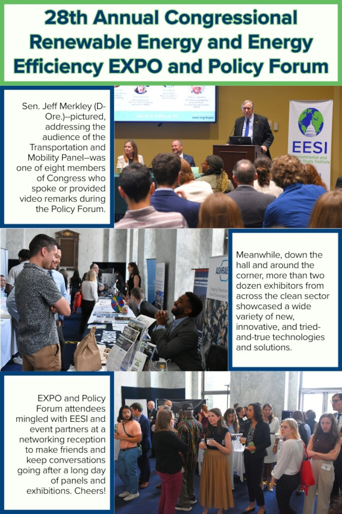 Less than three weeks after that big hit, EESI convened dozens of clean energy advocates and business leaders—and a bipartisan group of members of Congress—at the 28th Annual Congressional Renewable Energy and Energy Efficiency EXPO and Policy Forum.
