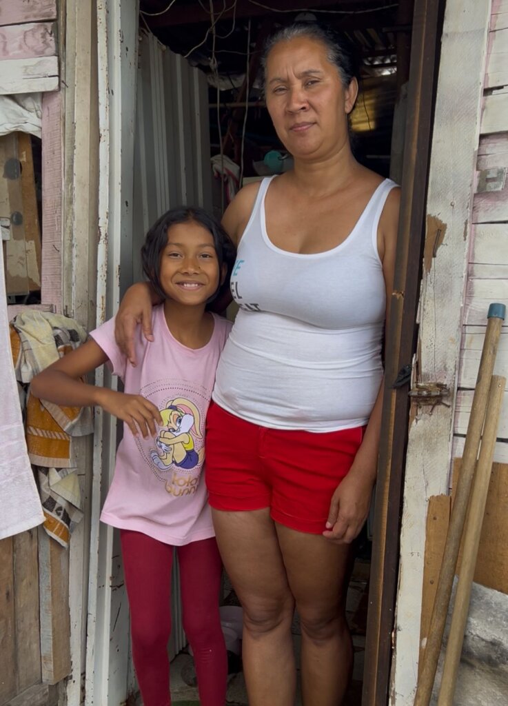 Conocemos a la Sra. Dora, una de las muchas madres solteras y cabezas de familia. No se queja del agotamiento de su doble trabajo; su verdadera angustia es por su hija de 9 años, Valery, y la salud de su hijo de 18, a quien le diagnosticaron distrofia muscular, lo que le ha causado pérdida de movilidad. Sus noches están marcadas por la tos incesante causada por la humedad. Doña Dora nos muestra con una mezcla de vergüenza y resignación el agujero en el techo, un recordatorio constante de que, por mucho que luche, la pobreza estructural la supera.