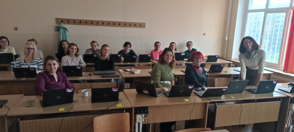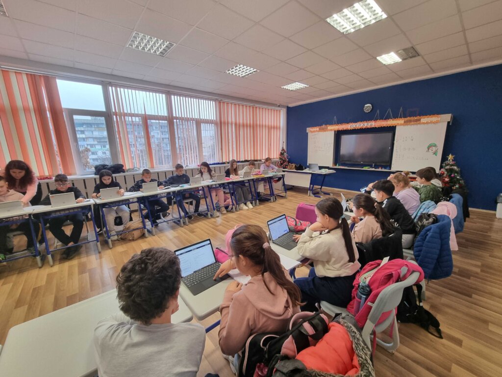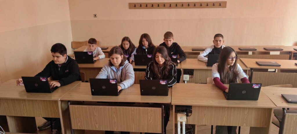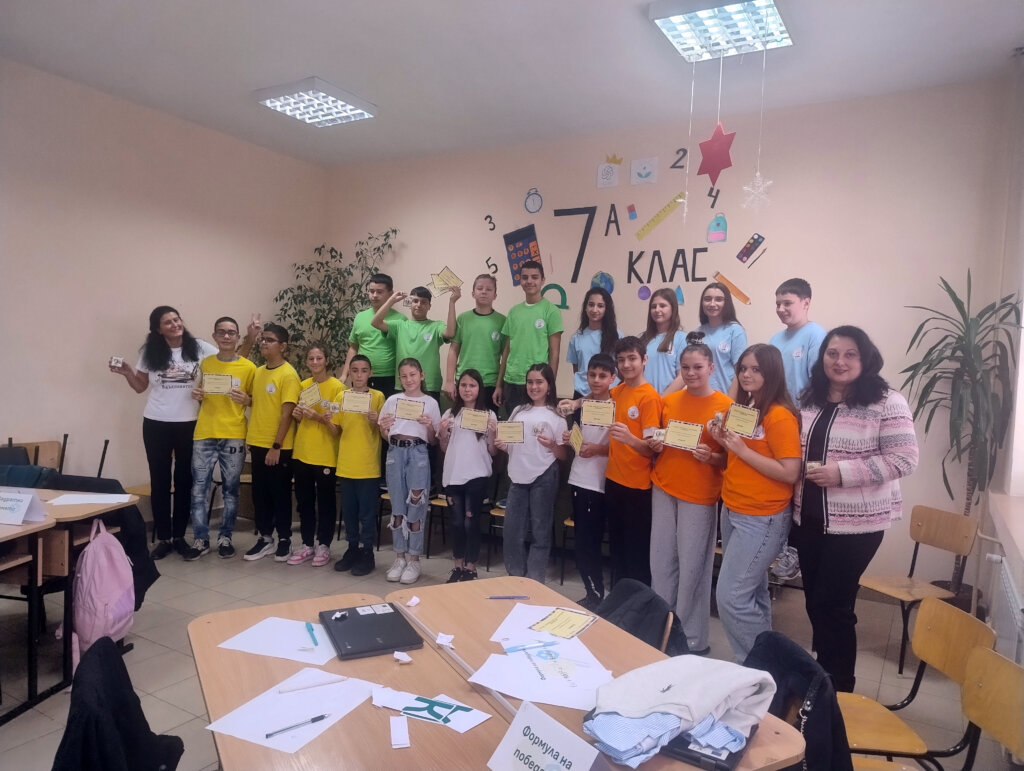 On November 28, we attended an open grade 7 math lesson at Ivan Vazov Secondary School in Mezdra, titled “Shortened Multiplication in Action: From Formula to Mastery with Khan Academy”. This lesson was led by senior teacher Diana.