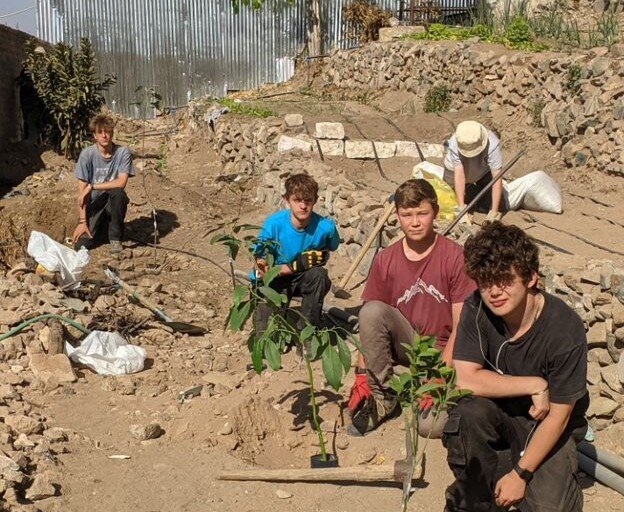Work was also undertaken to double the size of the school vegetable garden and install drip-irrigation, dig a long trench and seal the bottom wall from dampness and concrete a new pathway outside the classroom that Impington International College funded and built in 2022.