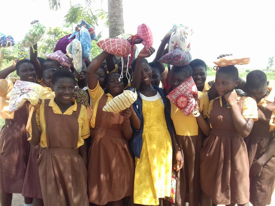 Across the continent in Ghana, our passionate leaders, Bernice and Prince, have been tirelessly moving around the country training girls to make their own DfG Kits, along with essential women’s health education. Overnight bus rides, rattling minibuses, and bumpy dirt roads haven’t been able to stop them yet. In just the five months that they’ve launched this training program, they have been able to directly reach over 1,200 girls. And they are on target for an even bigger impact in 2017!