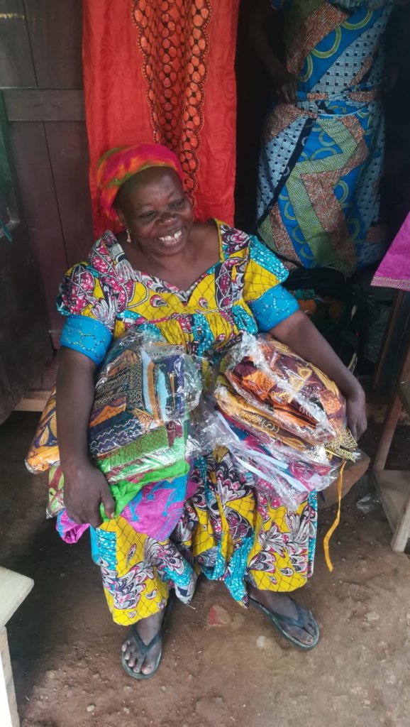 But the funding also helped her when she had to confront unforeseen events. For instance, there was a fire in the market in front of her shop a few months ago. The fire spread and damaged her utensils. She had 4 and now, only two can be saved in order to keep producing the peanuts. Also, someone robbed 7 pagnes she had exposed. The loss was huge for her. But thanks to the funding, she plans to import more clothes from Nigeria, so she can have a better margin and more profit. The costs may well be higher because she’ll have to pay the travel to Nigeria and spend a night there, but at the end, she will gain money because the clothes are cheaper in Nigeria than in Douala (another city in Cameroon where she currently buys the clothes). The funding was a massive help for her, and now, she has started to reimburse the money to Femmes d’Atta (so that other women can benefit from similar funding). And she can keep the interest of the fund in order to send her children to school. This is a great achievement for Mama Astadiko who she herself has been learning to read and write thanks to LifeTime Projects literacy project.
