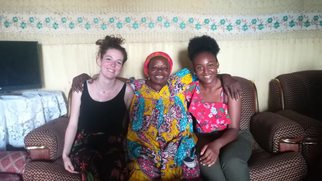 We met one of them, Mama Astadicko, 64 years old. We went to her shop in a neighbourhood of Yaoundé (Etuidi). Her shop is quite small but there is a lot in it. On the outside, she exposes typical African clothes called “pagnes”, shoes, and crockery. There is a little bench on the outside so that she can sit on it and control her merchandise and avoid robberies. On the inside, she sells peanuts, other sorts of food and different types of jewellery. The inside is very small but she exposes all her products on wooden shelves. She has a little mattress and several chairs in order to receive people and clients. When she welcomed us in her little shop, our first impression was that everything was very tidy. And even if she sells a lots of merchandise, everything has its own spot.