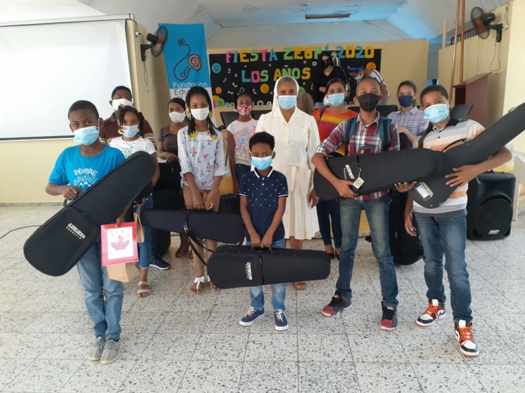 Fedujazz is also expanding the opportunities to kids from another city, this time to Nigua, San Cristobal RD, where we have 26 kids learning how to play the Violin as part of the orchestra being formed, the happiness and the excitement was showing up in their faces receiving the instruments by hand. These of 57 instruments were donated by Musik Ubers Meer and FEDUJAZZ Donators.