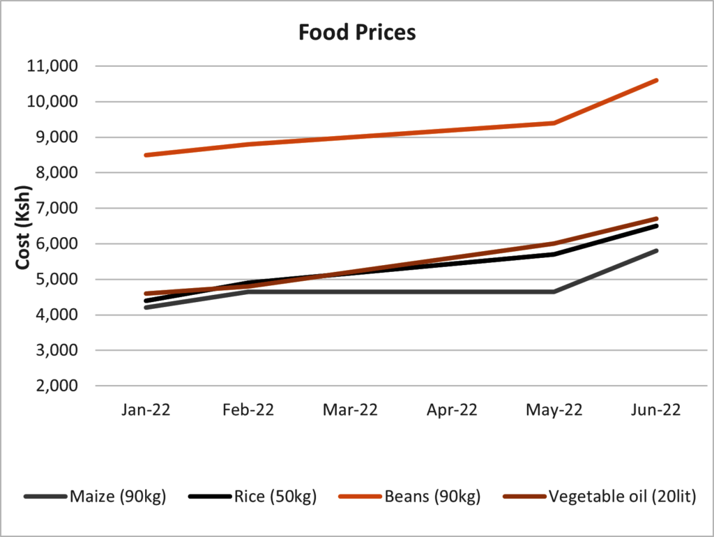 Prices for some food items have fallen back a little and now stabilised over the last 12 months but the cost of beans (the protein element of the meals) has now doubled since the start of 2022, currently costing around KES 17,000/£120 per 90kg bag.