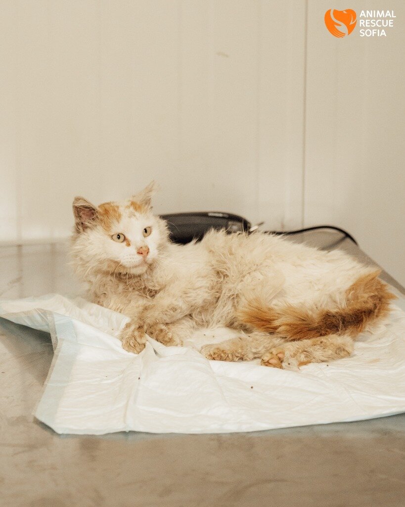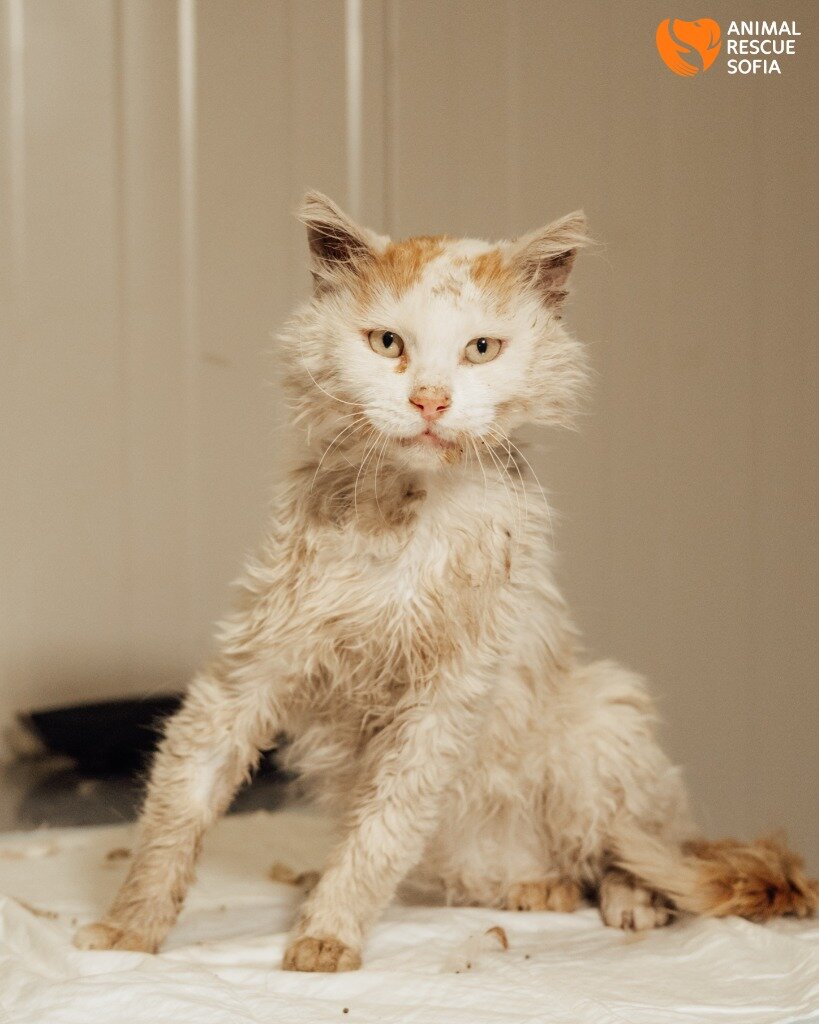 Mikado was found by foreigners travelling throughout Bulgaria, in helpless condition –emaciated and dehydrated, with extremely low temperature and terribly matted wet coat. The examination at the clinic showed that he had AIDS and kidney disease. He received a combined treatment of antiemetics and antibiotics, fluids, high-energy supplement foods, immune boosters and kidney support.
