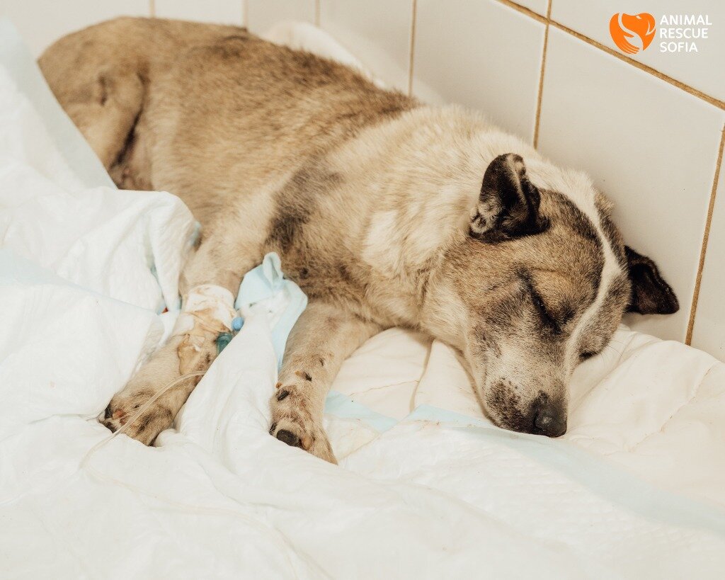 Luchano was another one of the many dogs and cats injured in car accidents that we helped in 2025. He was brought to our shelter by a person who saw the traffic accident close to Sofia airport and how Luchano got injured. The man thought the dog had died, but the next day, when he was taking the same route to go to work, he saw that Luchano was still alive, but unable to move, and brought him to our shelter, trying to get help for him.