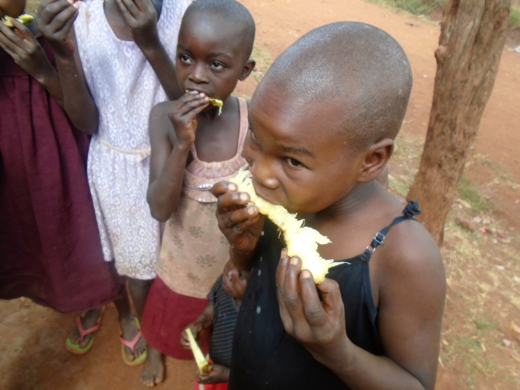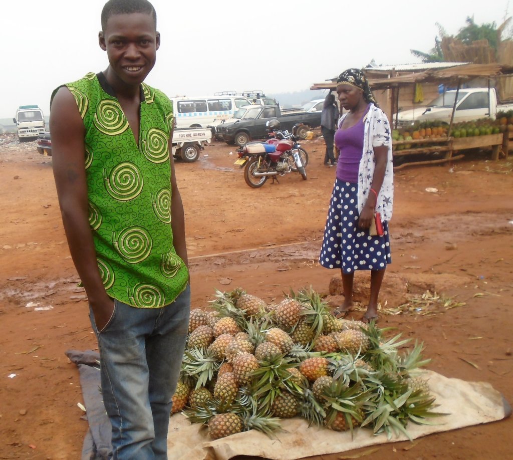 Fortunately they are also super healthy as they are plumb full of Vitamin C, Manganese, Vitamin B, have anti-inflamatory properties, and aid in digestion. As an added bonus, ripe pineapples sell for between $0.30 and $1 according to size on the retail market- which in Uganda is not a bad price at all!