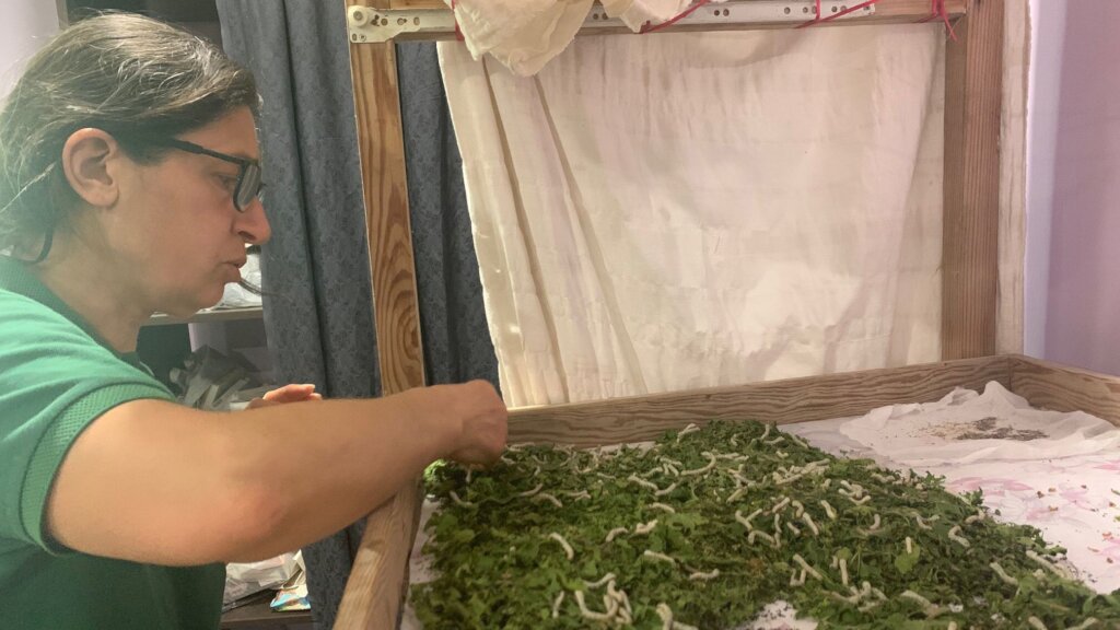 The cooperative uses “peace silk techniques” that cause no harm to silkworms, incorporates renewable energy in its processes, and minimizes waste through recycling and natural dyeing methods. It also provides training for women and young people to engage in fair and environmentally responsible work.
