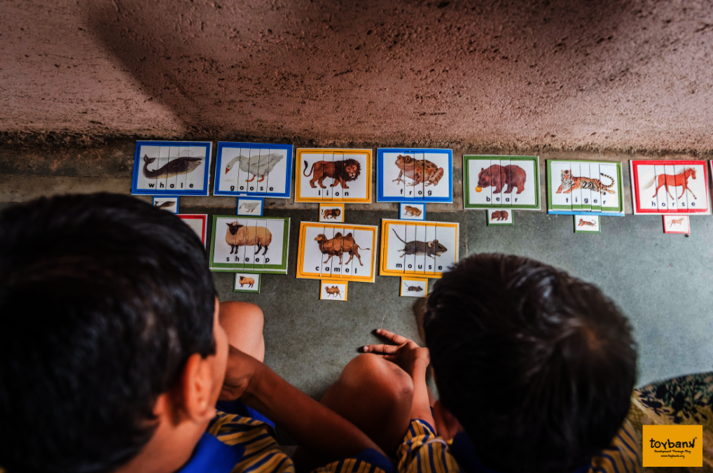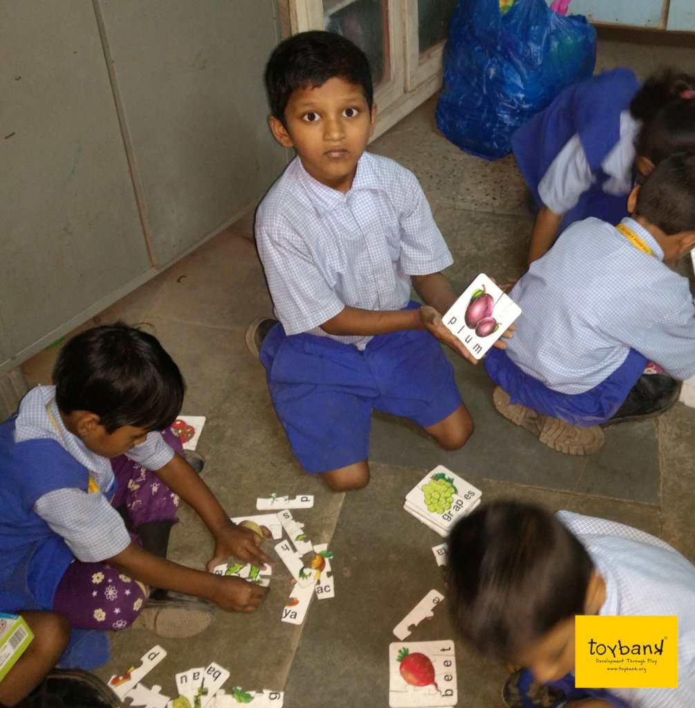Over the last 3 months, our focus was on interpersonal skills and eating healthy food through a diverse set of board-games and interactive conversations. It's the monsoon season in India, and many children are at-risk of falling ill due to inadequate sanitation and unhealthy eating habits. We addressed these issues through fruit and vegetable puzzles and flashcards. We also conducted a special coloring session on healthy eating and oral hygiene. We also played games that encourage teamwork and collaboration.