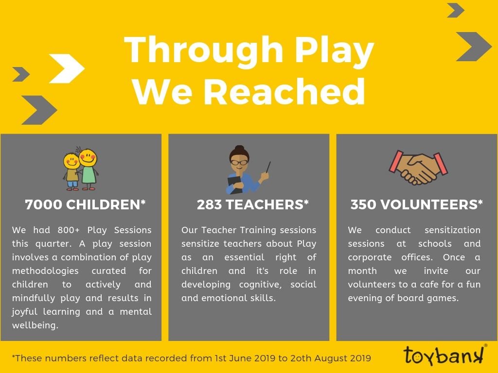 This quarter we worked collaboratively with close to 300 partner facilitators in implementing our play methodologies via 800+ Play Sessions to reach over 7,000 children (as of 20th August 2019).