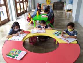 Monthly donation sends 15 trash picker's children to Pre-School for 1 year. They learn to read, write, spell and socialize 3 times/week.