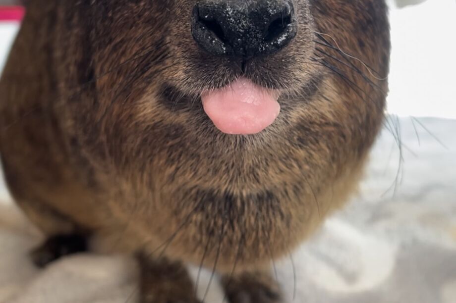 In South Africa, hyraxes are known as dassies. While they normally live in large family groups, at DAKTARI we care for two orphaned, free-roaming rock hyraxes, Caline and Eric, who have chosen our camp as their home. Without a natural group, they rely on us for love, gentle care and protection through nutritious food, warmth on cold days and encouragement of natural behaviour, while we educate people to respect and protect hyraxes.