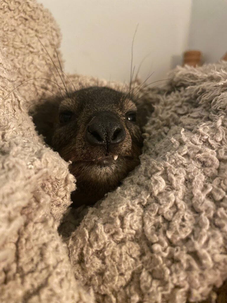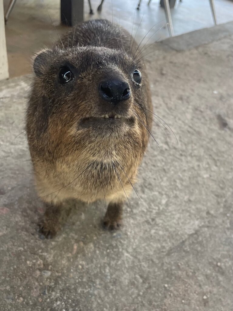 Fun fact: hyraxes are more closely related to elephants than to rodents. Yes, these tiny fluffy creatures share evolutionary history with the largest land animal on Earth. And if you look closely at Eric’s mouth, you will understand why.