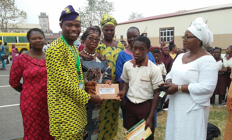 IA Tosin was among the 18 newly inducted ISERH Ambassadors and beneficiaries of ISERH SSCE/UTME scholarship, having made an aggregate score of 75% in the 2017 Aspiring the Best Competition (ABC). The teachers and management of the school couldn't hide their enthusiasm as they all, individually and in groups, posed for photographs with the boy. They were all filled with the assertion: 'Oloriburuku kii se ara ile mi' which literally means 'I SHARE NO FAMILY BOND WITH A FAILURE '.