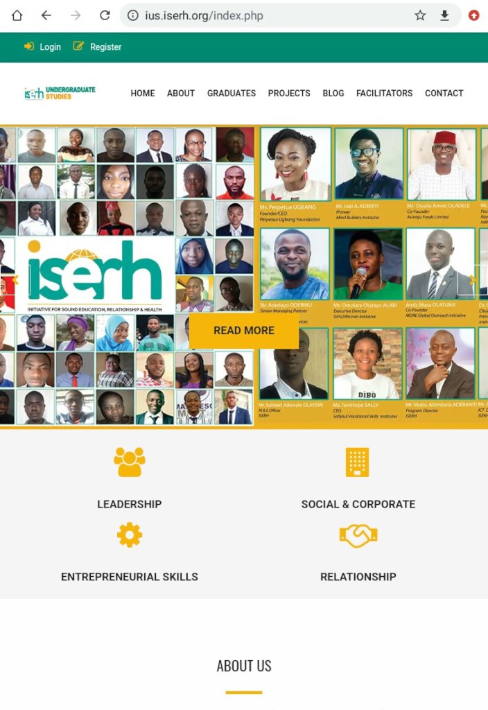 Our matriculated scholars/students should note that to graduate from this course, s/he is expected to record a 75% attendance rate, 50% facebook participating rate, and carries out a capstone project. At ISERH Undergraduate Studies, we teach what no university teaches for free.