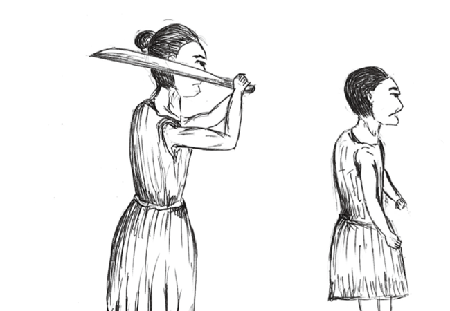As Angeline tells it, "During a time of war between the villages of Kionop and Tiku, two brothers from Kionop, Sidui and Kadui, were known to be the strongest and most feared warriors. In Tiku, Lumingou and Binagal, also siblings, were the strongest; Lumingou was the elder of the two. Sidui and Kadui were eager to kill Lumingou and Binagal. One day, they travelled to Tiku River to spy on Binagal and Lumingou. When they reached the river, they saw Lumingou and Binagal walking together on their way to fish. But what they saw surprised them and they did not dare not approach the duo; as Luminggou and Binagal walked along the river, the bottom of their feet did not touch any of the rocks. Kadui and Sidui hid themselves and watched quietly, letting Lumingou and Binagal pass them without making any contact. Kadui and Sidui returned to their village because they felt they were unable to match the strength of Binagal and Lumingou. They held a meeting and slaughtered a pig, agreeing not to fight anymore."