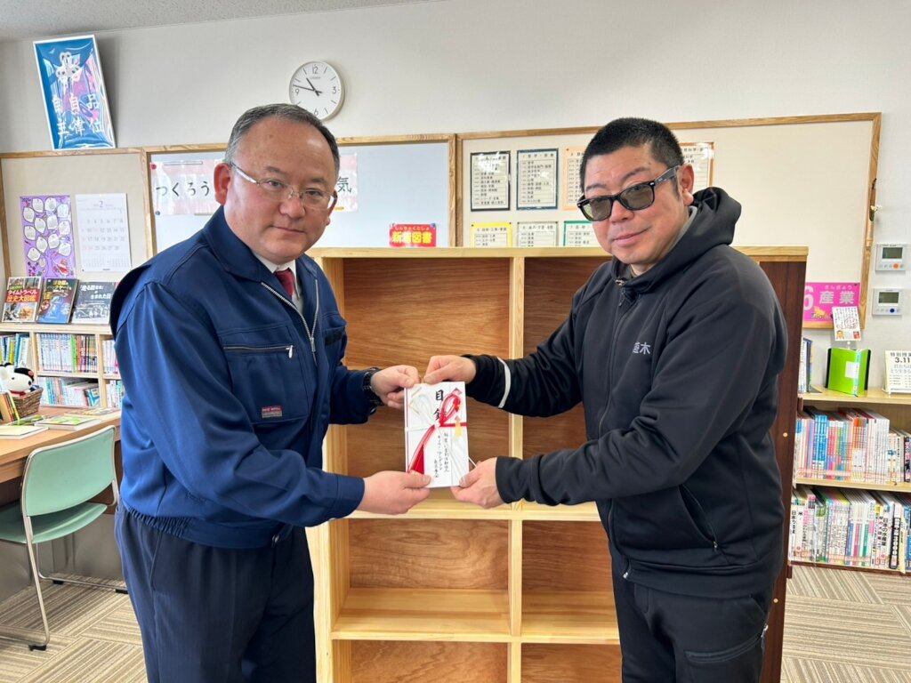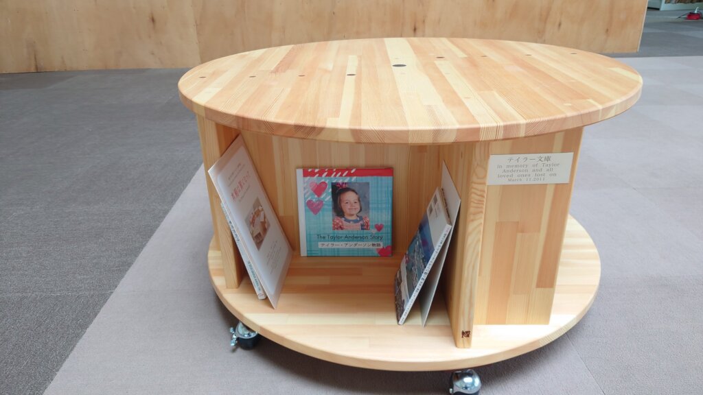 A Taylor Bunko was donated to Ishinomaki City Kitakami Junior High School. Kitakami Junior High School was damaged by the Great Tohoku Earthquake and Tsunami, and students will now be able to study in a new school building. The Taylor Bunko will be placed in the hall adjacent to the library, and it will be a space for children to read books at their leisure.