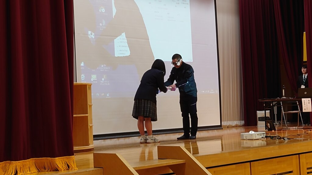 A Taylor Bunko was established at 'Gakusha Yume no Mori', Okuma Town, Fukushima Prefecture, and a presentation ceremony was held on September 11th. Endo-san, advisor to TAMF and creator of the bookshelves, attended the ceremony, and spoke to the children about Taylor Anderson. In junior high school, they were learning from the new English textbook that includes a lesson about Taylor, and the timing was perfect. He also gave book coupons to the school so they may buy books for their new Taylor bunko.