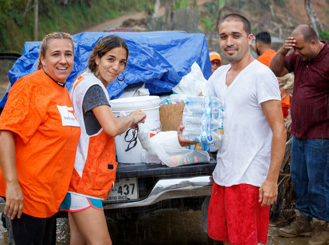 Soon after the storm, World Vision and Calvary Church in Utuado teamed up to reach families in some of the most remote, hardest-hit areas of Puerto Rico. In the mountainous area of Consejo, we provided water, food, tarps, hygiene supplies, and other essentials to families who had been cut off from services by mudslides. “This is a relief for everybody,” said one man named Agustin. “You guys are the first. The first meals, water, and tarps we got, we got from you guys.”