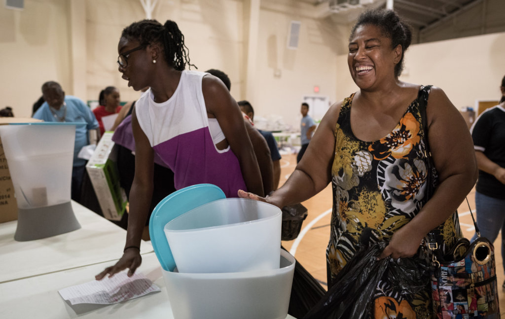 Brenda smiles as she receives a Kohler water filter at Bethel Assemblies of God Church in Immokalee, Florida. “We’re safe, thank God. But we can’t get any of our things,” says Brenda, who was scrambling to find shelter for her extended family of eight.