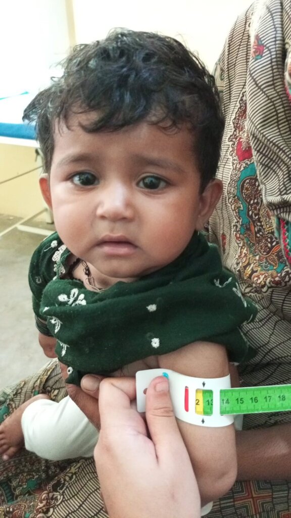 When she arrived, Zubaida weighed only 4.5 kg, and her MUAC measured just 10.3. With timely treatment through Ready-to-Use Therapeutic Food (RUTF) and regular follow-ups, her health began to improve. After 8 visits, her weight increased to 6.2 kg, and her MUAC reached 12.3.