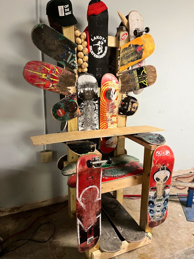 Pine Ridge is an hour’s drive away from even a Walmart, and people don’t have money to buy their kids skateboards or safety equipment. Getting them what they need to skate and get out of their isolation is critical. Through our work at the skatepark, we also realized that many of the kids needed shoes, so in addition to getting kids new skateboard gear to use and keep, we are now fundraising for shoes to give the kids too.