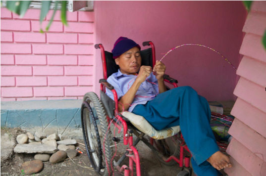 Finding a vocational center that could help individuals with debilitating deformaties who needed a regular chaperone and were often ill was not an easy task. Under our own vocational training programs, Himalayan HealthCare tried Chitra at tailoring, which he enjoyed, but his hands and feet were too deformed to operate a sewing machine and he unfortunately had to give this up after a few months. Finally, he began working with Himalayan HealthCare's artisanal crafts line, JeevanKala.