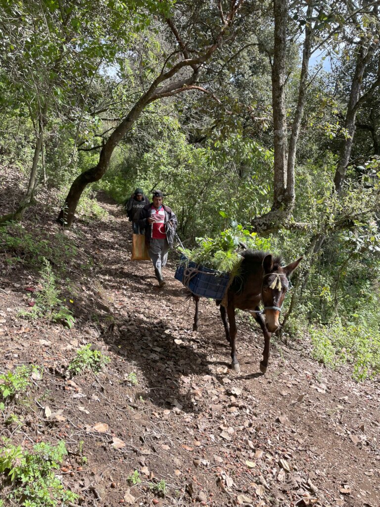 The most significant effort, however, was focused on forest reforestation: 12,004 trees—including red pine, white pine, palo blanco, aguacatillo, alder, and oak—were distributed among 42 participants, averaging 285 trees per person. Transporting the trees to the planting sites was no easy task: two- to three-hour hikes, carrying trees on their backs or by horseback. Before planting, they cleared, pruned, and prepared the land, following techniques learned through our Citizen Scientist trainings.