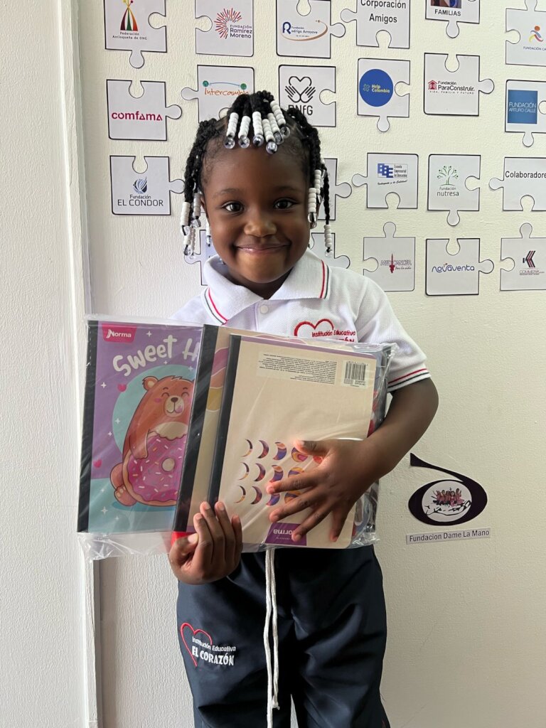 Permítanme compartir el testimonio de Jorge, un niño de 12 años, porque su historia refleja lo que sus donaciones pueden lograr: "Solía ir a la escuela con mi hermano menor, arrastrando mi zapato suelto". Teníamos muchísima hambre. El recreo era una tortura porque no teníamos nada para comer. Un día, íbamos camino a la escuela y nos encontramos con la psicóloga de la fundación Dame La Mano, quien nos llamó. Inmediatamente, nos compraron zapatos nuevos, nos dieron el almuerzo, ¡y por primera vez llevamos una lonchera a la escuela! Ese día ya no aguantamos el hambre; nos unimos al programa Vamos a Soñar. Desayunamos, almorzamos, ¡y mi lonchera escolar es mi momento favorito! Siempre tiene deliciosas sorpresas. También nos dan clases de inglés y arte, me proporcionan los útiles escolares y me ayudan con las tareas. Quiero viajar por todo el mundo y cuidar animales cuando sea grande; tengo muchos sueños. Mi mamá también está recibiendo ayuda; estudia corte y confección y dice que pronto encontrará trabajo. “Gracias a ti el recreo ya no me da miedo, me hace feliz”.