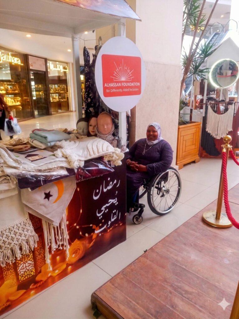 As part of its efforts to support and empower women with disabilities, Alhassan Foundation is committed to creating opportunities for them to showcase their talents and creativity to the community. In this context, the foundation supported Fatma in participating in the bazaar held on March 7, 2026, at Dandy Mega Mall in Giza.
