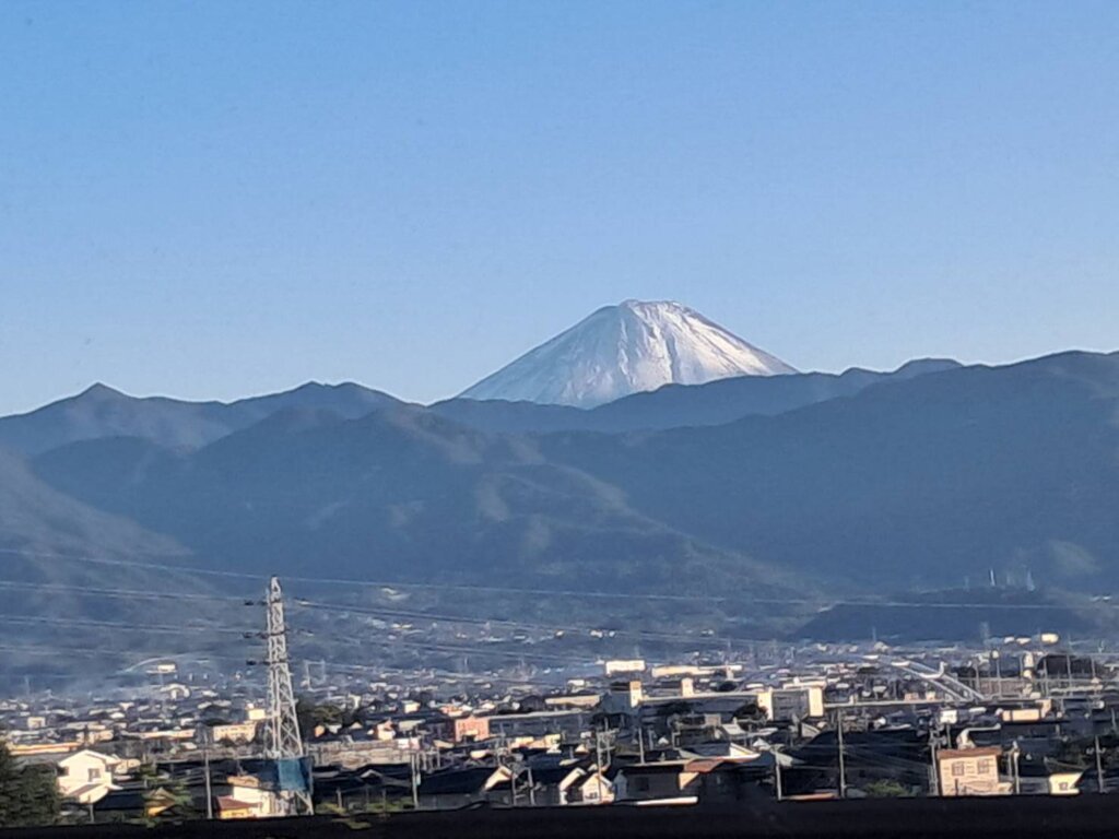 ![Fuji seen from Kofu City on the first snowfall day]()