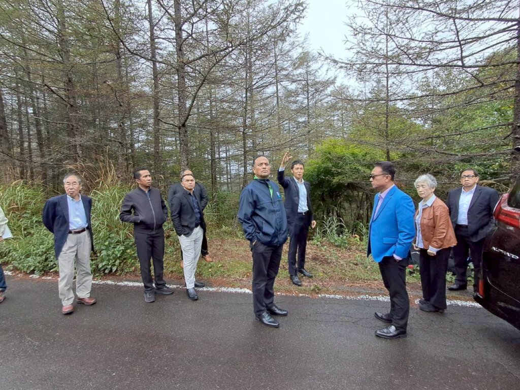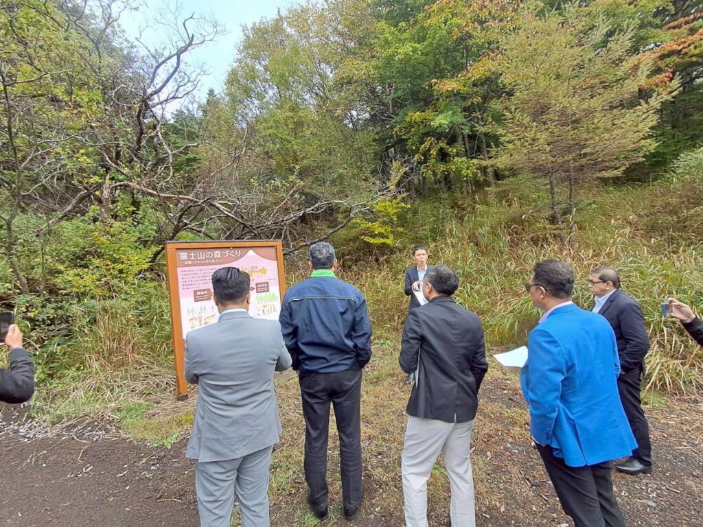 At the project site, staff from Yamanashi Prefecture, which owns the forest land, explained the characteristics of Mt. Fuji and Yamanashi’s forests. During the visit, the Malaysian representatives asked, “Why is it necessary for people to be involved instead of leaving tree growth entirely to nature?” We explained that by taking an active role in forest care, people can accelerate the forest’s regeneration, emphasizing the importance of maintaining a continuous human connection with nature.